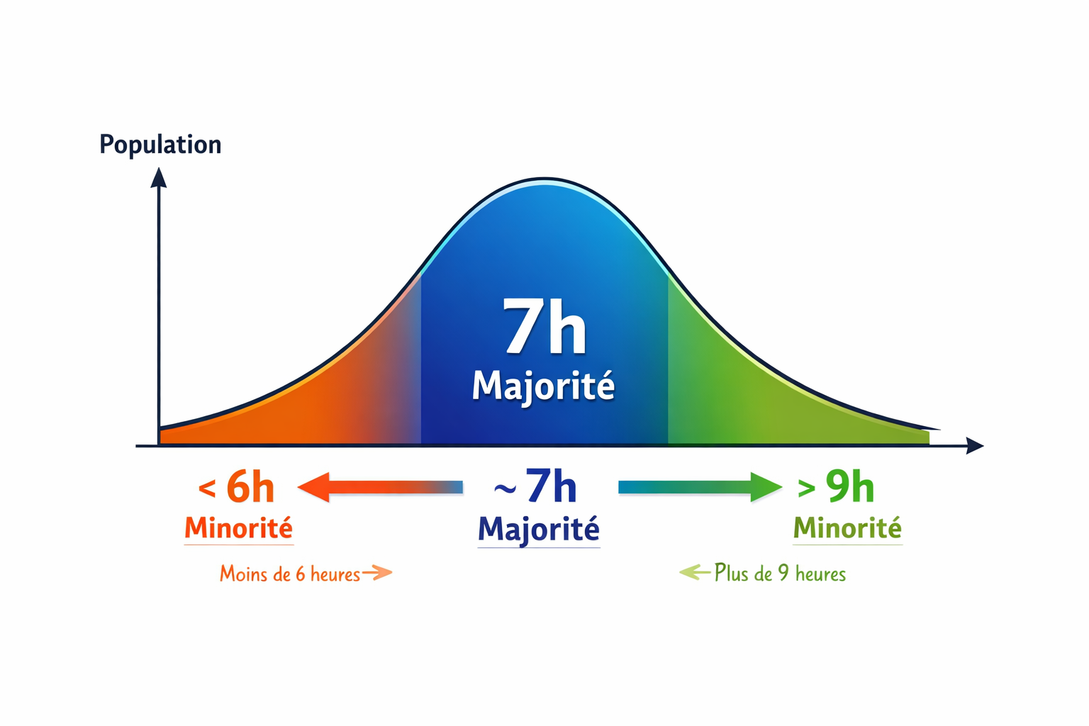 « En réalité, la grande majorité de la population dort entre 6 et 9 heures (environ 90 %). Les 7 heures se situent au centre de la fameuse courbe de Gauss », explique le Dr David Richard.