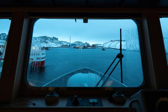 Le patrouilleur HDMS « Vaedderen » de la marine danoise appareille au large de Nuuk, au Groenland, le 18 janvier 2026.